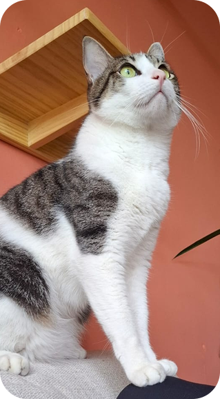 Com 4 anos, responde como um cachorro quando vê uma bolinha de papel: busca, traz, pede bis. Faz acrobacias dignas de plateia e recebe visitas com curiosidade quase profissional. Apegado ao Maloquito, mas aberto a novas amizades.